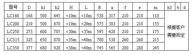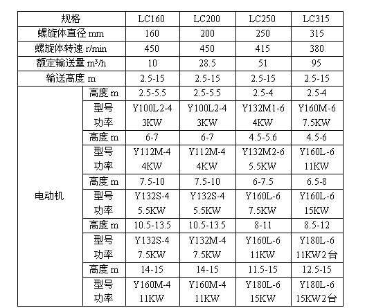 六、LC型垂直螺旋輸送機(jī)規(guī)格及技術(shù)參數(shù):